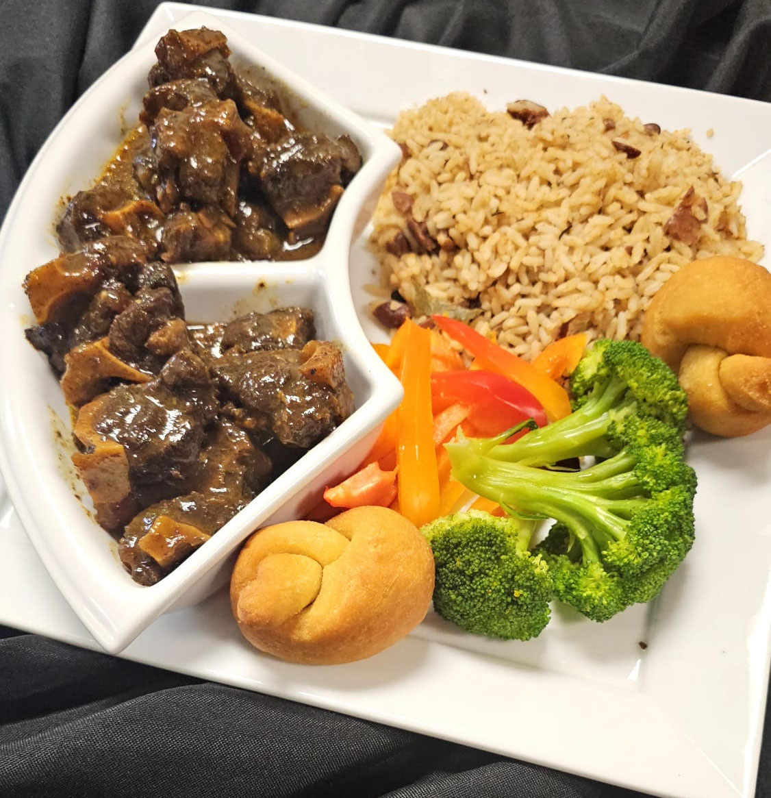 Let’s talk about the stars of the show – our menu! You absolutely have to try our Jerk Chicken. It’s not just chicken; it’s an experience. Marinated for hours in a fiery, fragrant blend of Scotch bonnet peppers, pimento, thyme, and secret spices, then slow-cooked to juicy, smoky perfection. Served with classic rice and peas and sweet, caramelized fried plantains, it’s the taste of Jamaica in every bite.